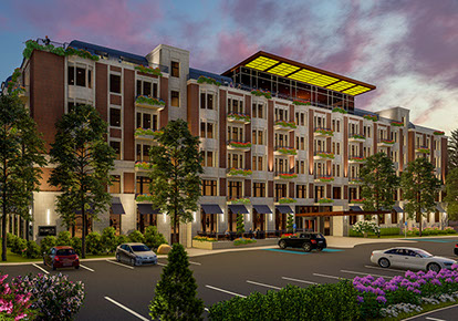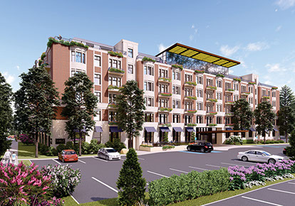 Blossom Mills will offer luxury senior living. The 6-story, 137-unit residential structure includes a lower-level parking garage, hotel-like ground floor amenities, and a rooftop penthouse with a sky bar, spa, swimming pool and open-air terraces that overlook the city of Rochester and the surrounding hills.