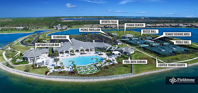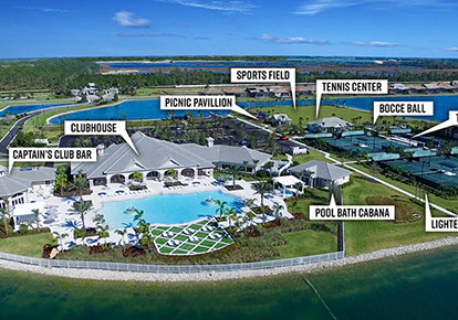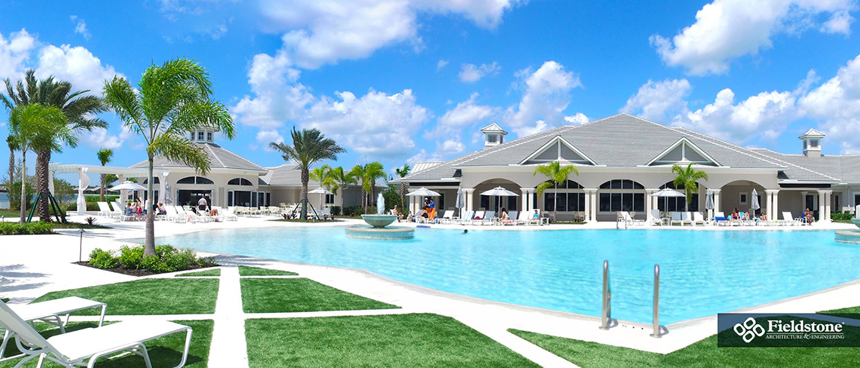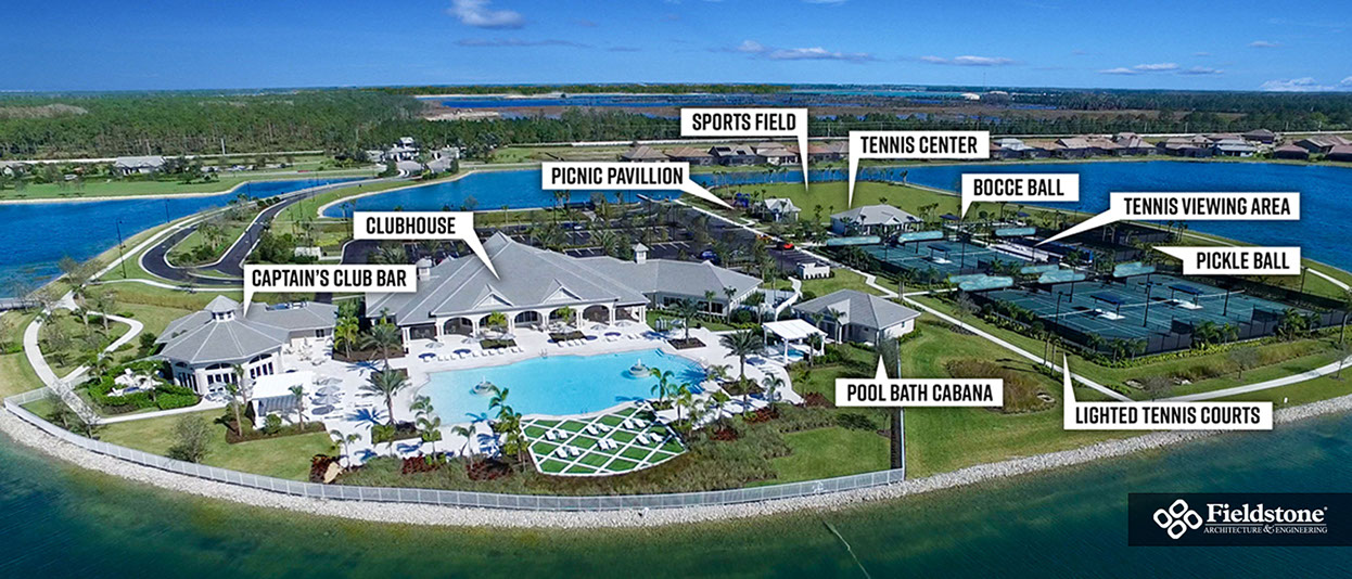 We partnered with this client to design an amenity campus that would stand out from the competition with features for multiple buyer groups. This campus features a Captain’s Club Bar & Grille, pool bath cabana, entry guardhouse and event lawn gazebo aside from the sophisticated resort-style clubhouse.
