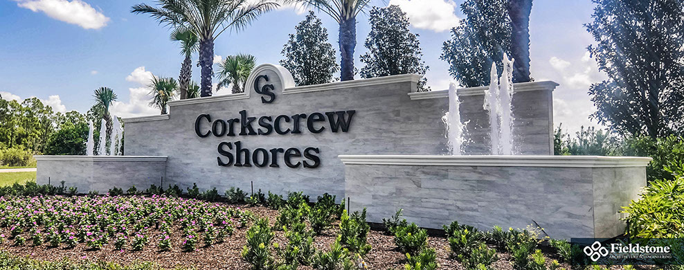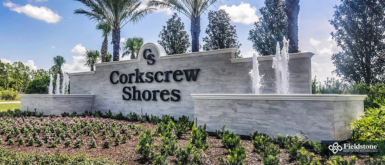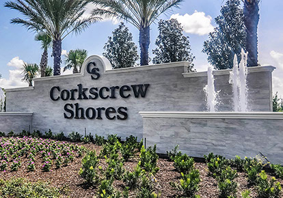 Spanning over 700 acres, Corkscrew Shores is nestled around natural preserves and a sparkling 240-acre lake. This gated community features a sophisticated resort-style clubhouse and amenity center. The design was influenced with a contemporary Coastal architectural style throughout the dining room, catering kitchen, bar, gathering room, locker rooms and lobby area for a full luxury experience.