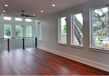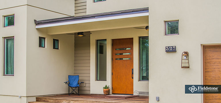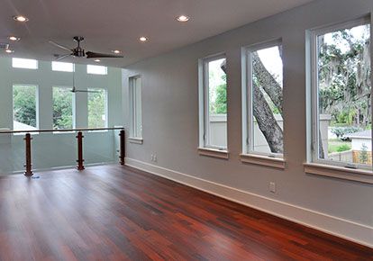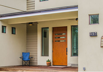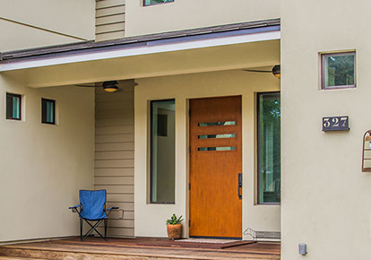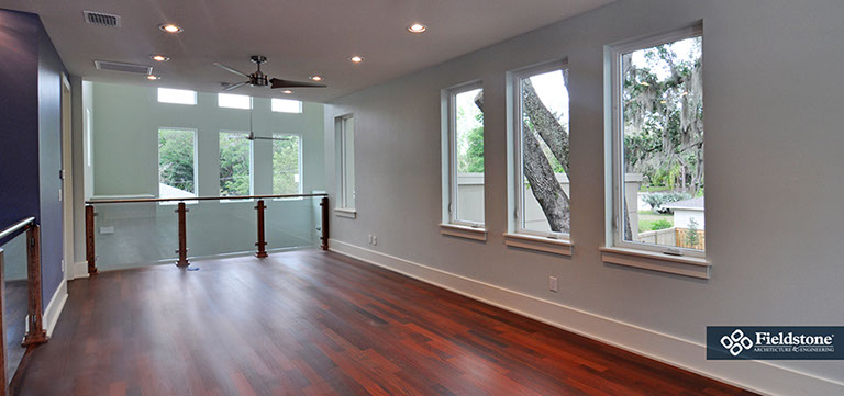 The entry tower clerestory windows allow natural light to cascade downwards into all rooms both on the first and second floors. The natural Ipé wood flooring fills the interior with warmth and creates the clean contemporary look the owner wanted.