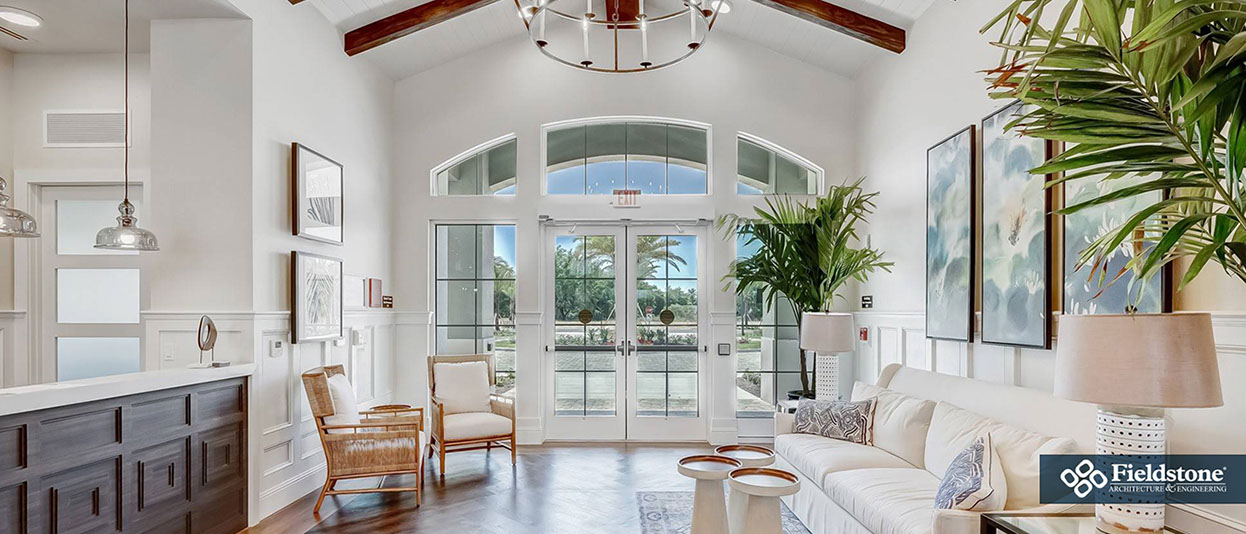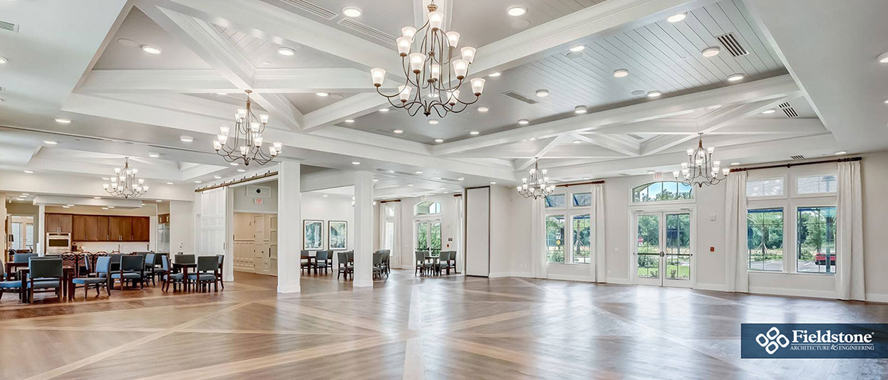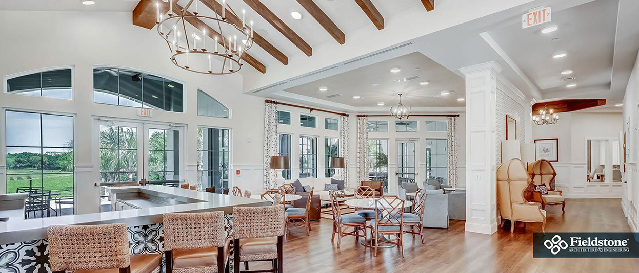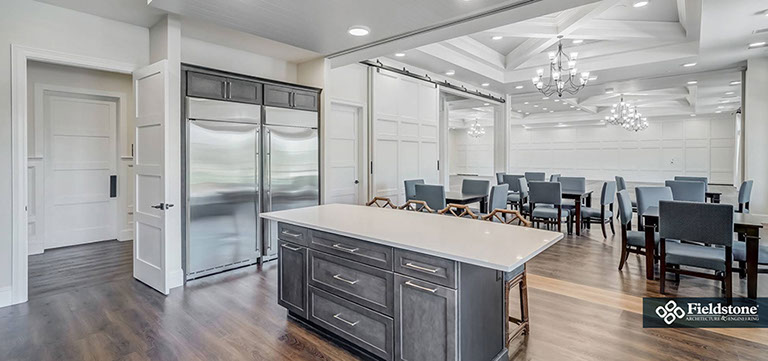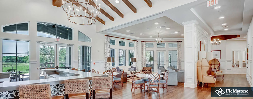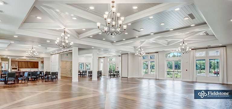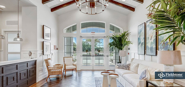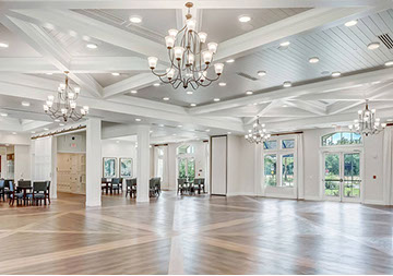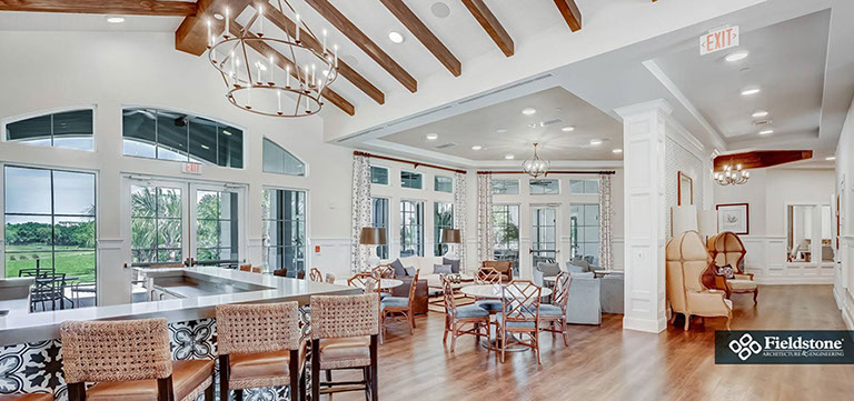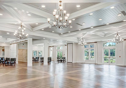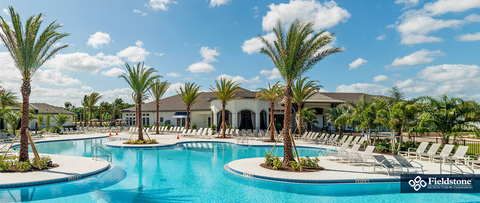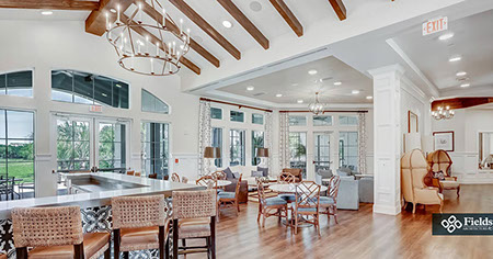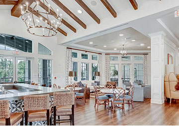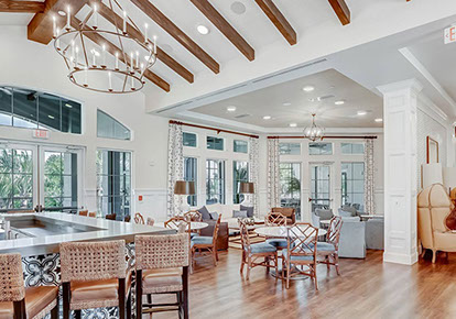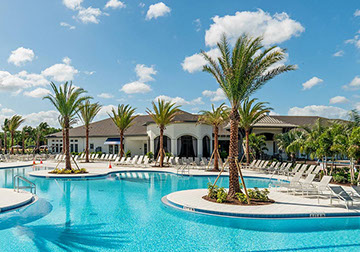 The Four Seasons at Orlando Amenity Campus sits immediately adjacent to the 9th hole tee box and fairway of the Mystic Dunes Golf Club. The clubhouse is designed in a British West Indies style of architecture and includes a resort-style Pool and Spa, Cafe, Bar, State-Of-The-Art Fitness Center, Craft Room, Catering Kitchen and Ballroom. Residents can enjoy more activities on the bocce, pickleball and tennis courts.