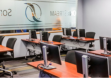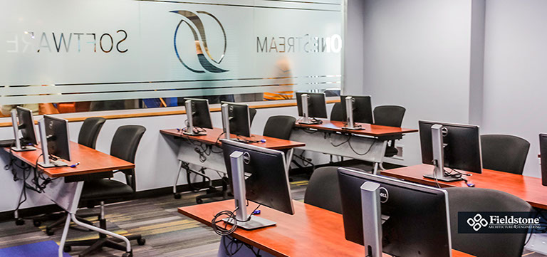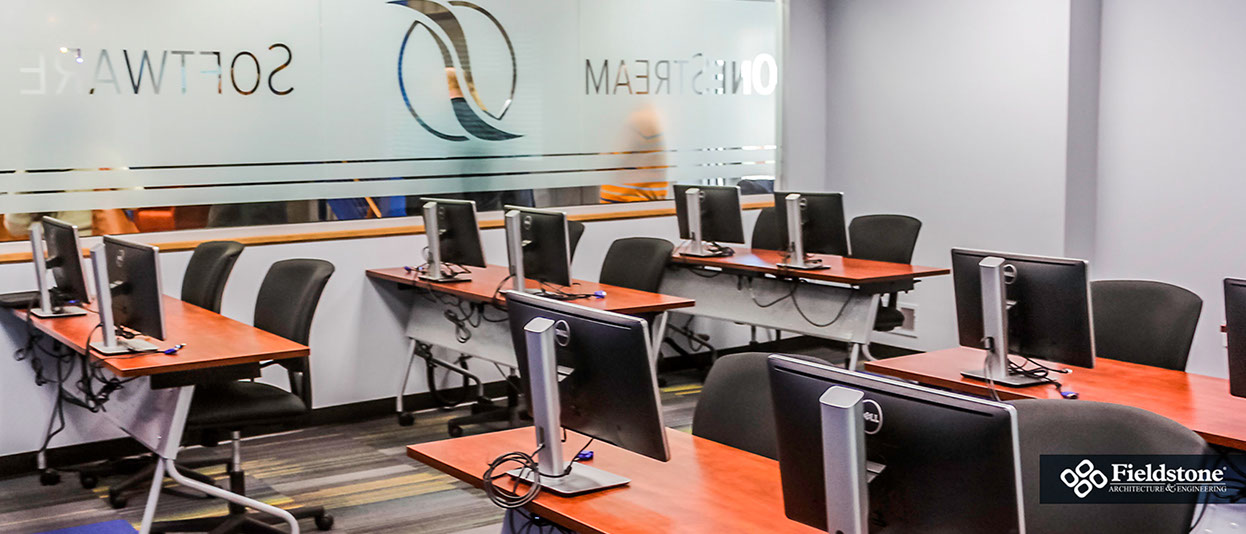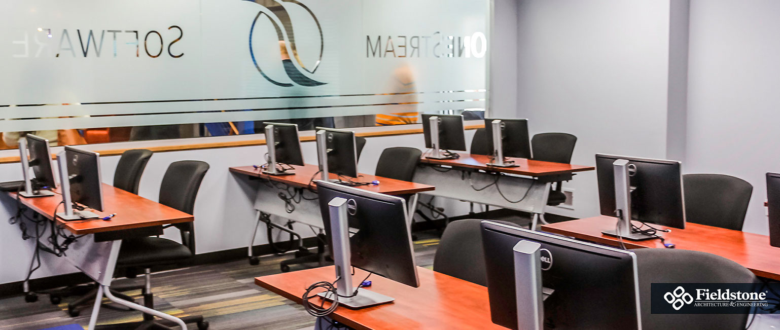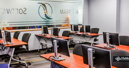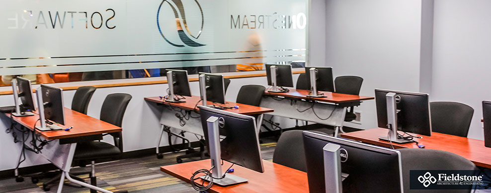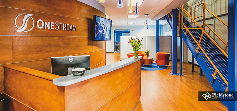 Our in-house team conceptualized a new corporate space for OneStream Software, resulting in a hybrid design that converted a bland warehouse into an office, research-development and showroom space. We listen to their programmatic needs and goals while designing with growth in mind, so their facility is ready to handle employee and company growth with ease.