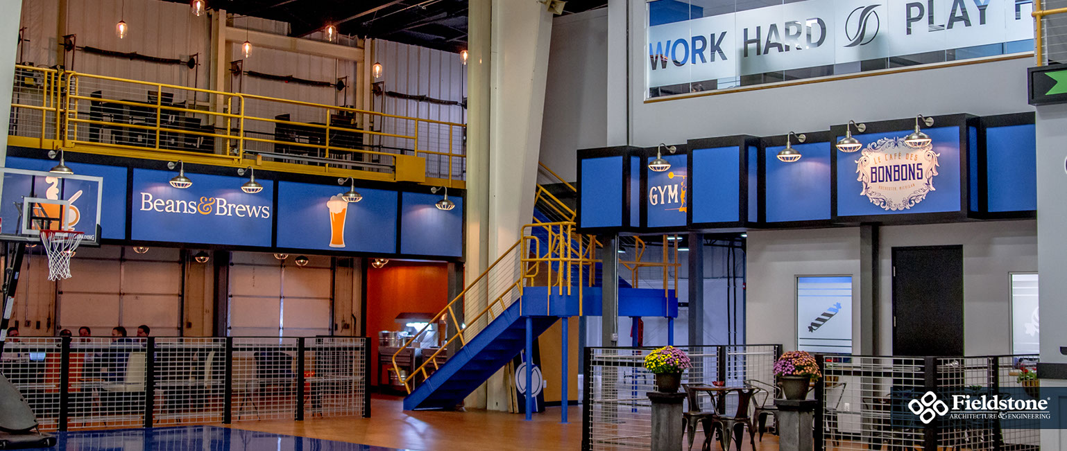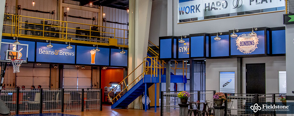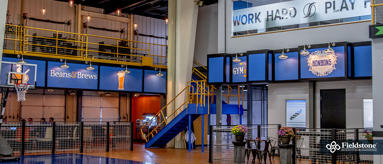 This corporate headquarters hosts a dynamic, authentic workspace that was transformed from a bland warehouse.