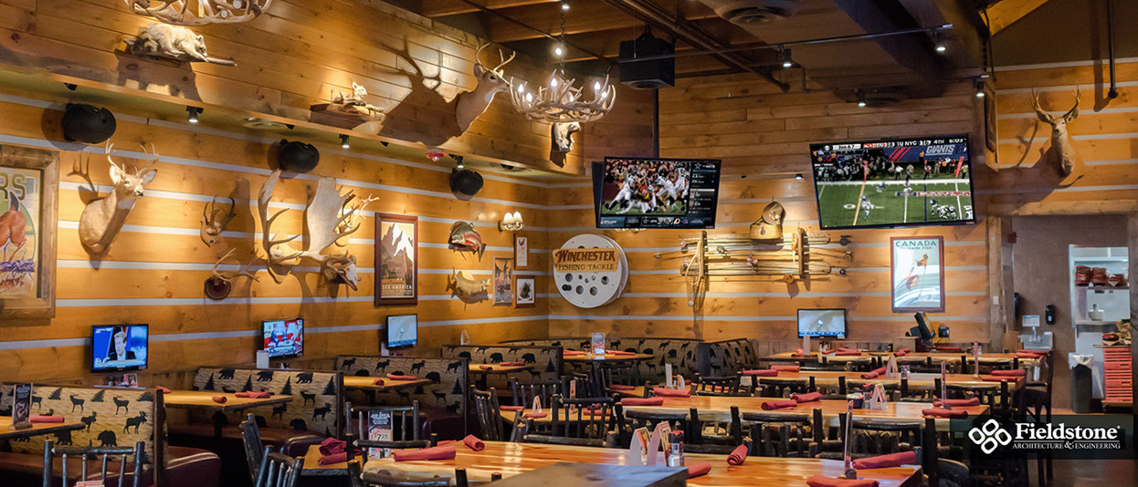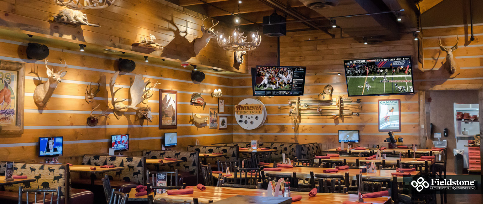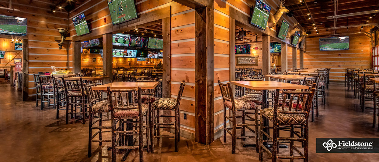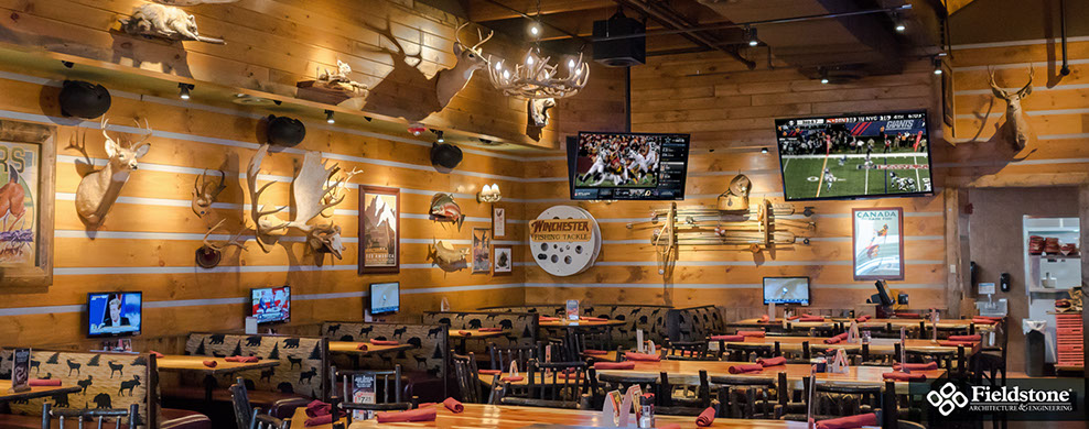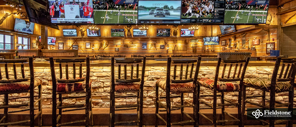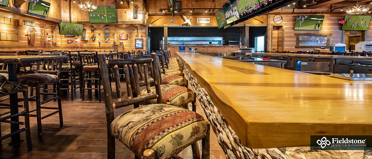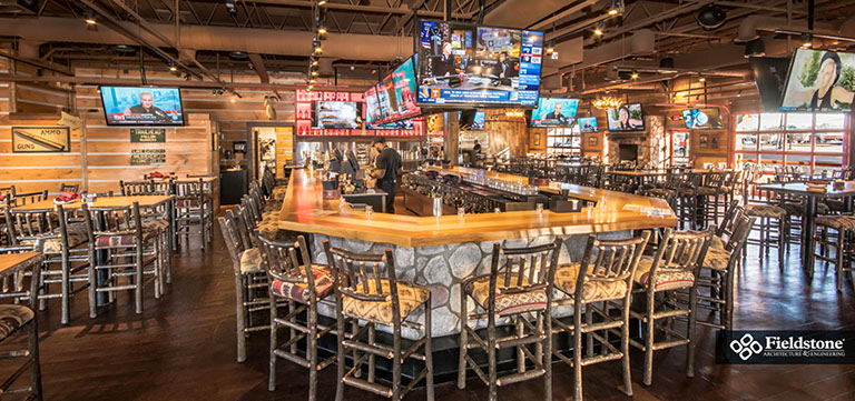 Southgate, MI: Fieldstone A&E renovated former Rosie O’Grady’s Restaurant into a Twin Peaks Restaurant. Renovations included building exterior and interior layout with finishes. The project consists of 9,900 total square feet with indoor seating for 260. The 1,500 sq. ft. outdoor patio area has additional seating for 65 with high-top tables, and cozy fire-pit areas.