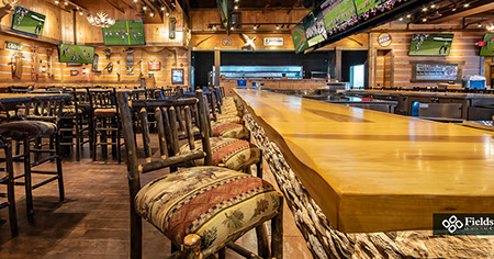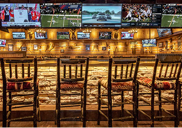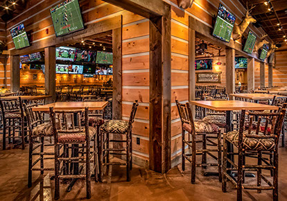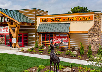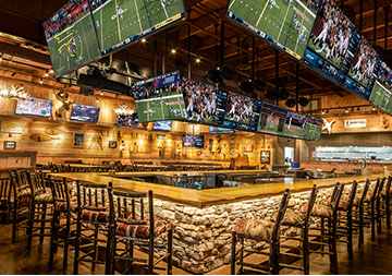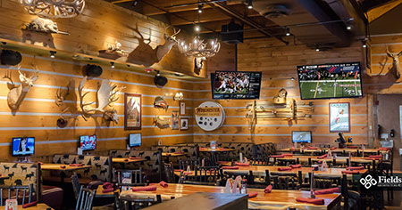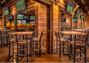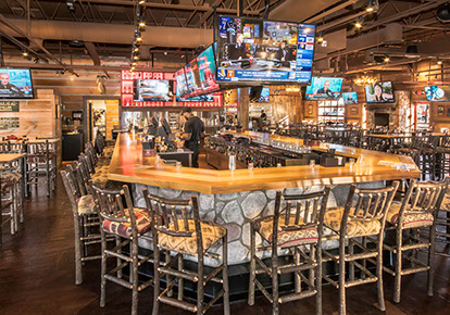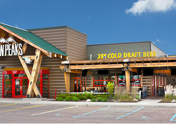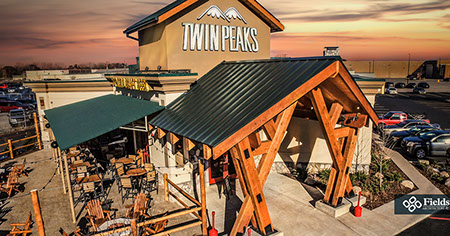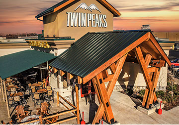 The Twin Peaks Restaurant franchise is known for its mountain lodge style appearance from the massive beams that welcome all who enter - to the rustic furnishings and finishes. This restaurant / sports bar has big screens lining the walls and offers "from scratch meals" and ice cold beer at 29 degrees, guaranteed.