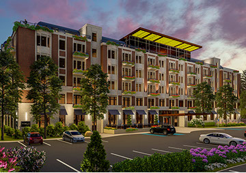 Blossom Mills will offer luxury senior living. The 6-story, 137-unit residential structure includes a lower-level parking garage, hotel-like ground floor amenities, and a rooftop penthouse with a sky bar, spa, swimming pool and open-air terraces that overlook the city of Rochester and the surrounding hills.