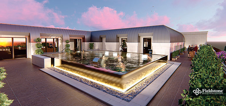 Blossom Mills will offer luxury senior living. The 6-story, 137-unit residential structure includes a lower-level parking garage, hotel-like ground floor amenities, and a rooftop penthouse with a sky bar, spa, swimming pool and open-air terraces that overlook the city of Rochester and the surrounding hills.