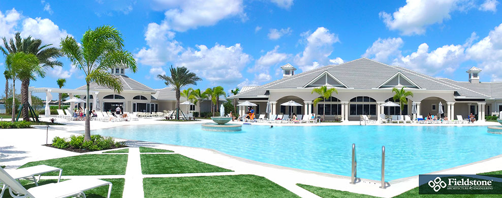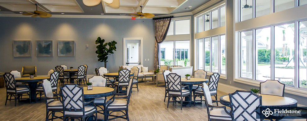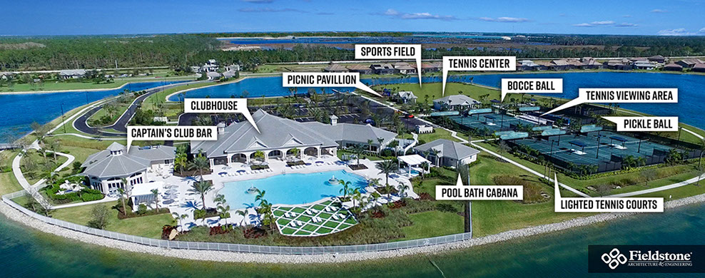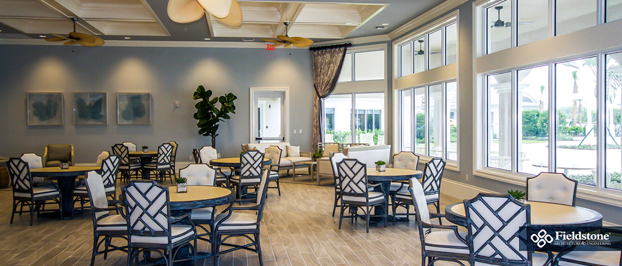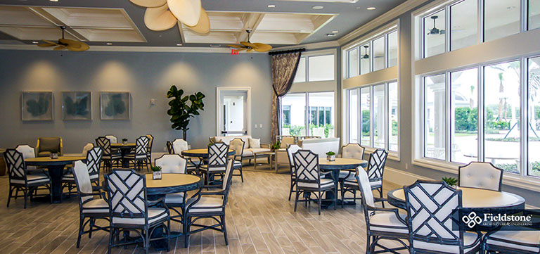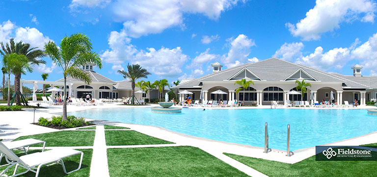 We partnered with this client to design an amenity campus that would stand out from the competition with features for multiple buyer groups. This campus features a Captain’s Club Bar & Grille, pool bath cabana, entry guardhouse and event lawn gazebo aside from the sophisticated resort-style clubhouse.