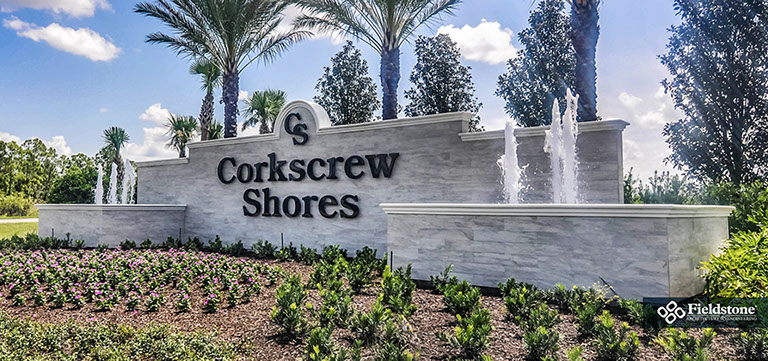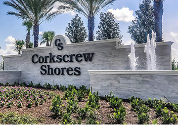 Spanning over 700 acres, Corkscrew Shores is nestled around natural preserves and a sparkling 240-acre lake. This gated community features a sophisticated resort-style clubhouse and amenity center. The design was influenced with a contemporary Coastal architectural style throughout the dining room, catering kitchen, bar, gathering room, locker rooms and lobby area for a full luxury experience.