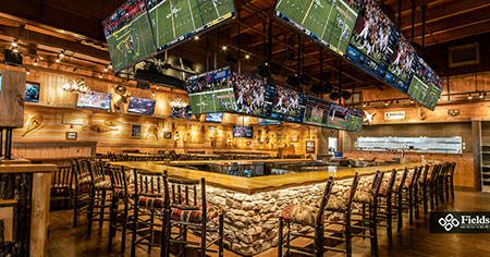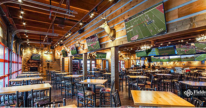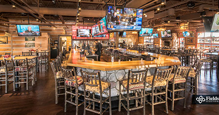 West Chester, OH: Fieldstone A&E renovated a former multi-level Champps Restaurant for this location just outside of Cincinnati, OH. Interior and exterior renovations included an entry addition and layout and finishes for dining and kitchen areas. The 11,000 sq. ft. projects holds a total of 325 seats. Interior dining room and bar has seating of 250, a lounge area holds 15 seats, and 60 seats on the Outdoor Patio including around a fire pit.