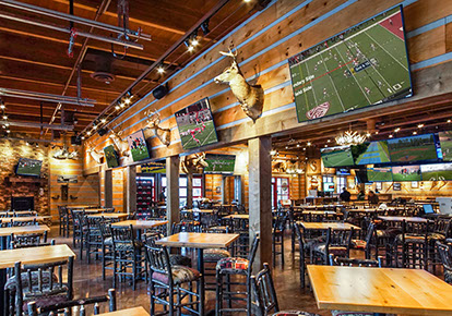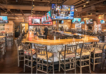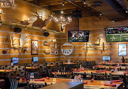 The Twin Peaks Restaurant franchise is known for its mountain lodge style appearance from the massive beams that welcome all who enter - to the rustic furnishings and finishes. This restaurant / sports bar has big screens lining the walls and offers "from scratch meals" and ice cold beer at 29 degrees, guaranteed.