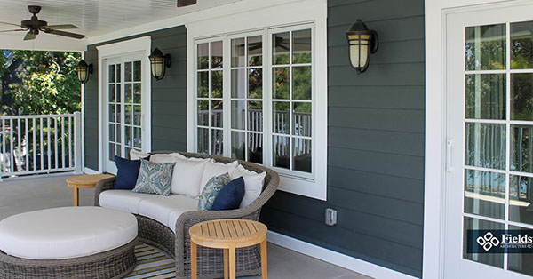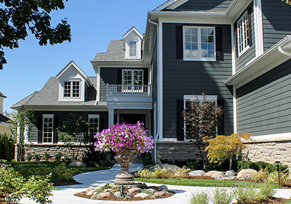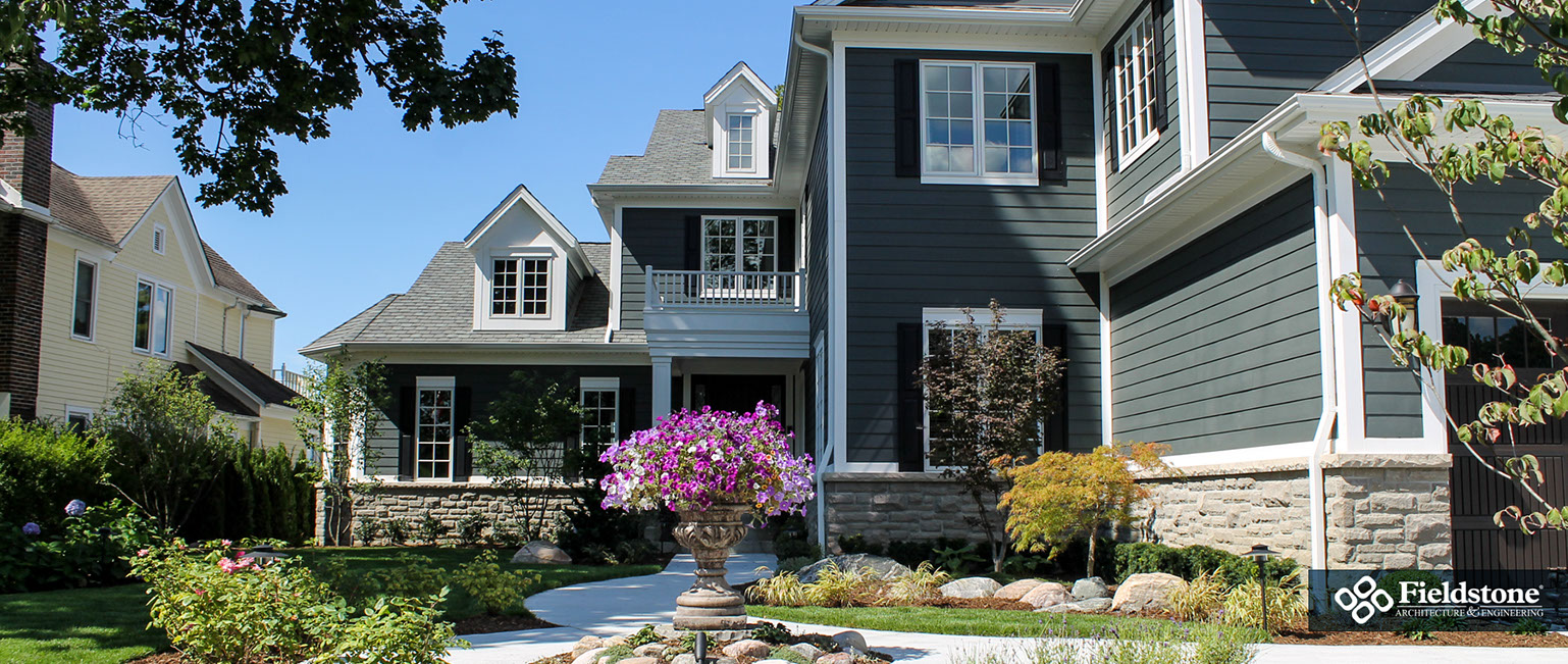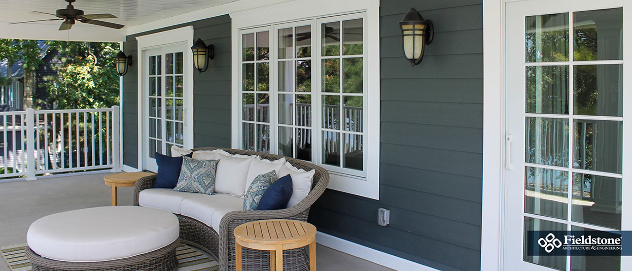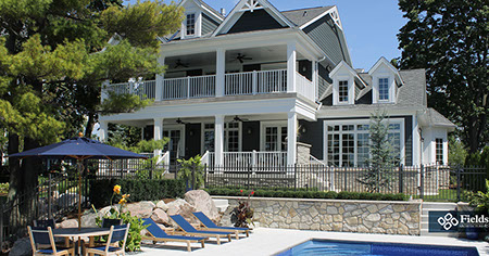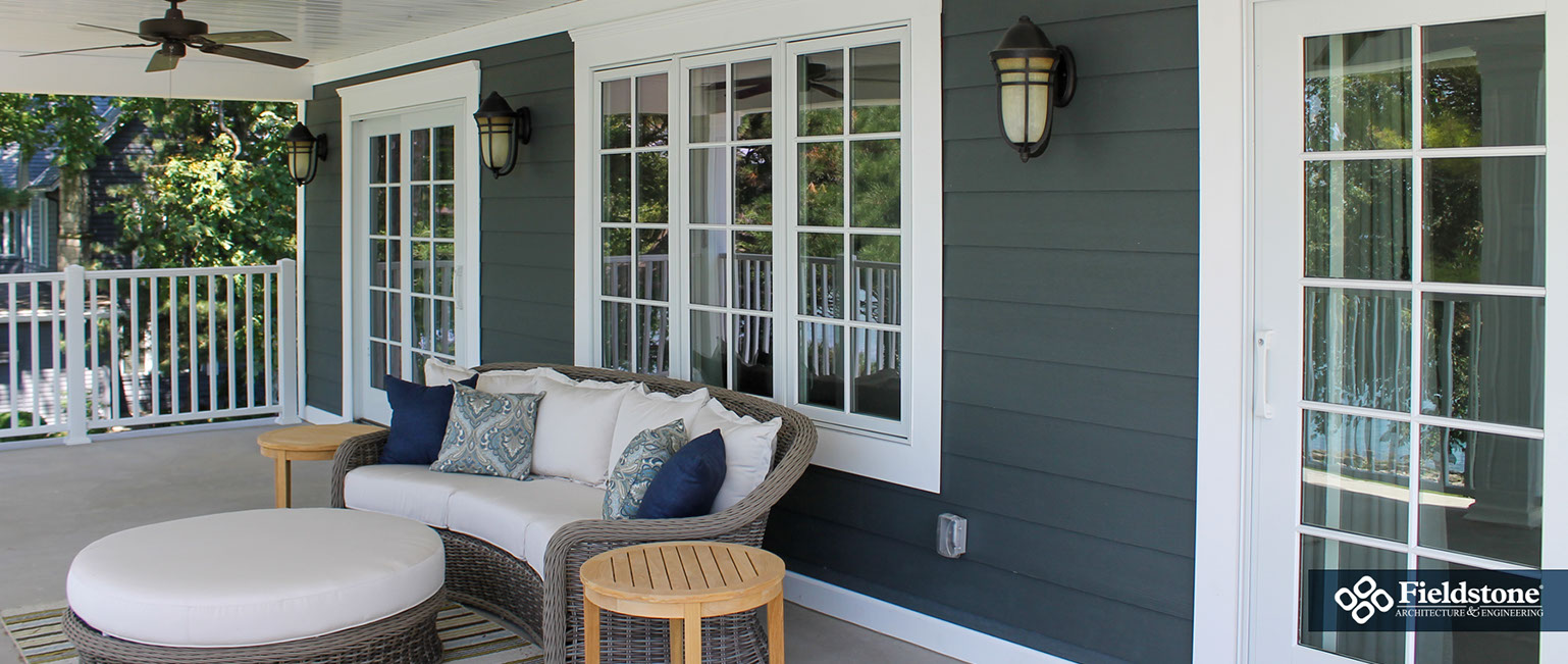 The owners requested a formal front entry and a casual outdoor living space with pool for the back of the home.