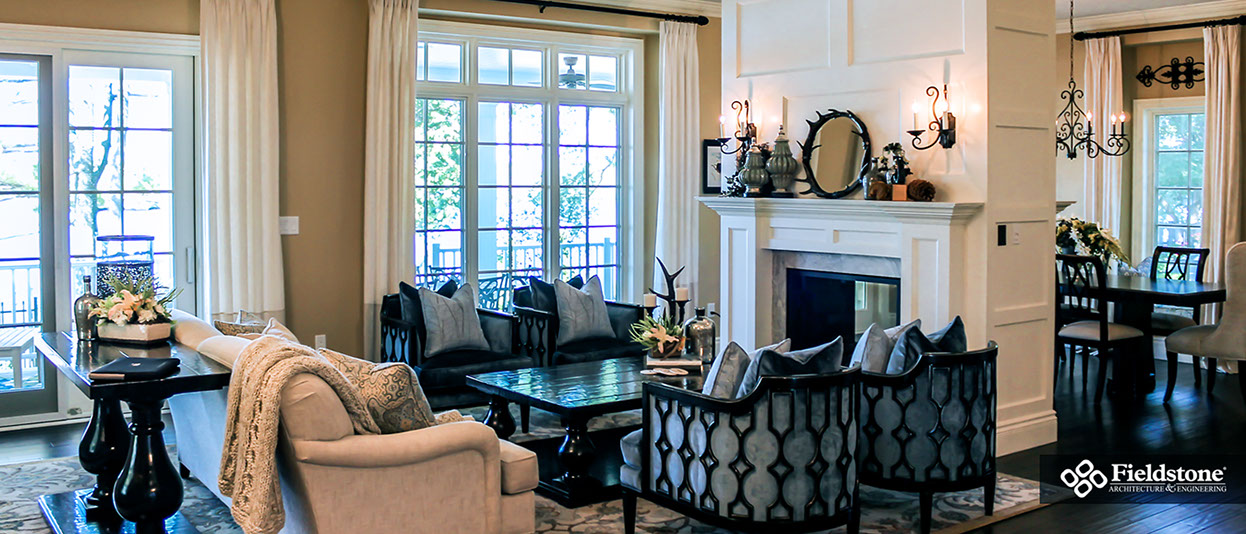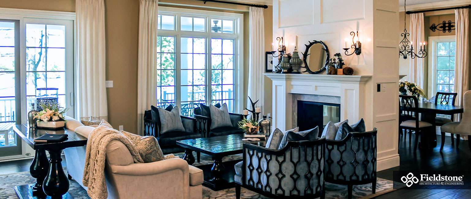The interior design reflects the owners desire to have a family based home that would be passed on for generations to come. The large windows take advantage of the view to the waterfront.