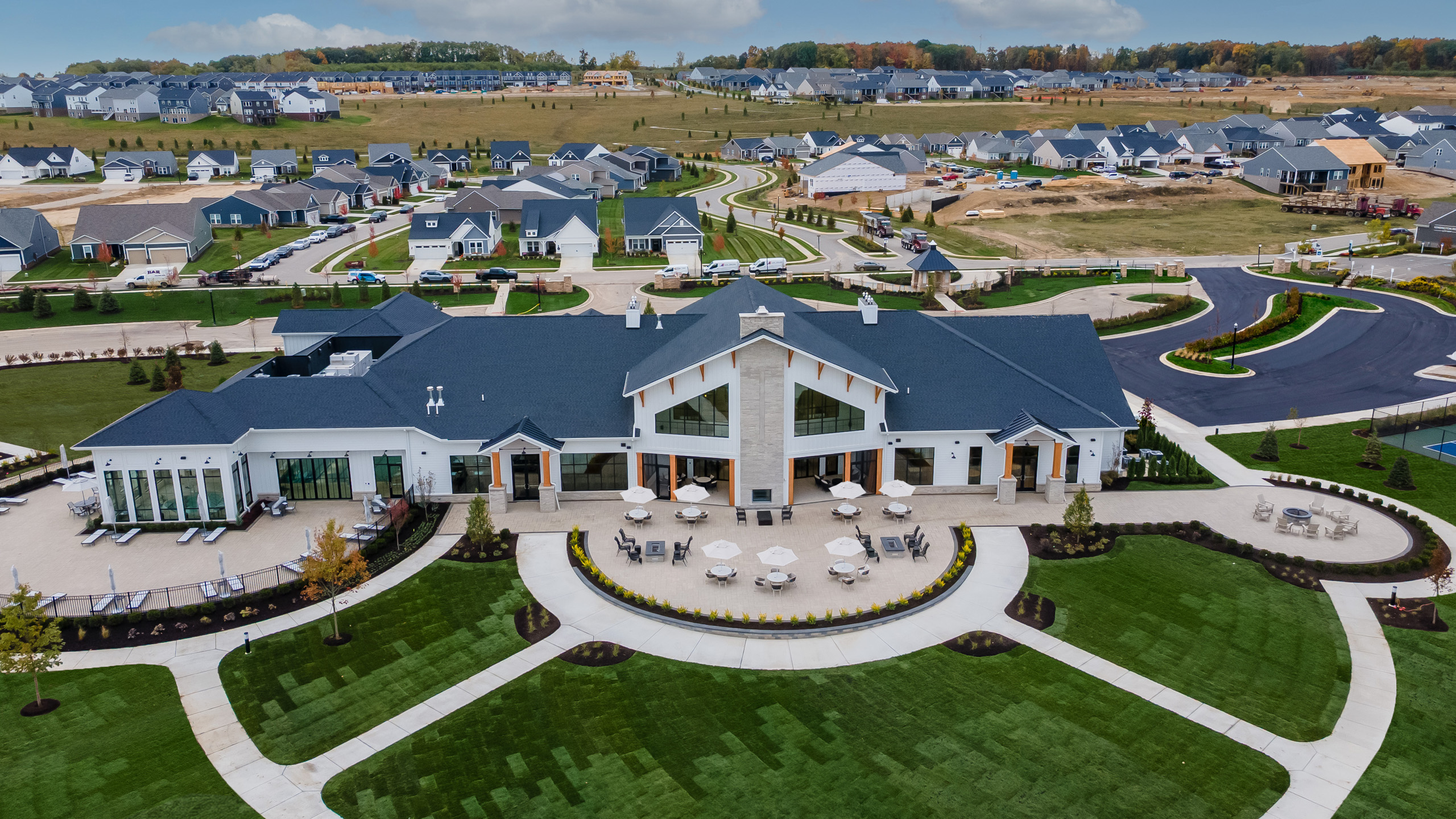 The 16,800 sq. ft. clubhouse is a true showpiece that embodies the brand’s commitment to lifestyle. Originally envisioned as a modern ranch, the design evolved into a modern farmhouse style, adding charm and character while maintaining functionality. This blend of aesthetics and practicality makes Kensington Ridge a standout among similar communities.