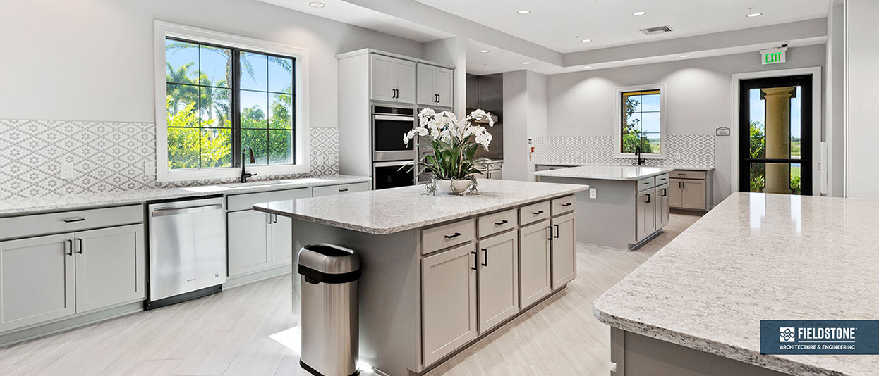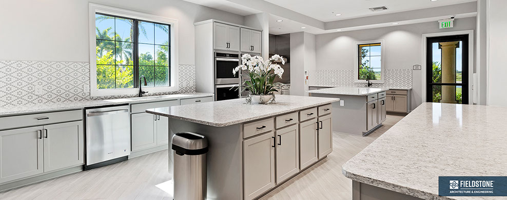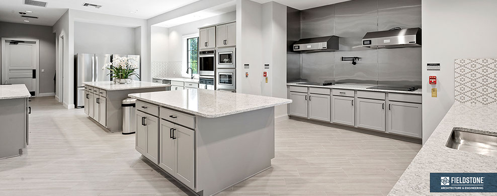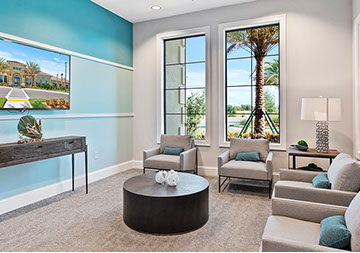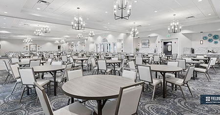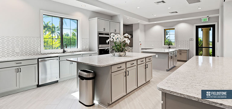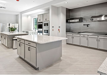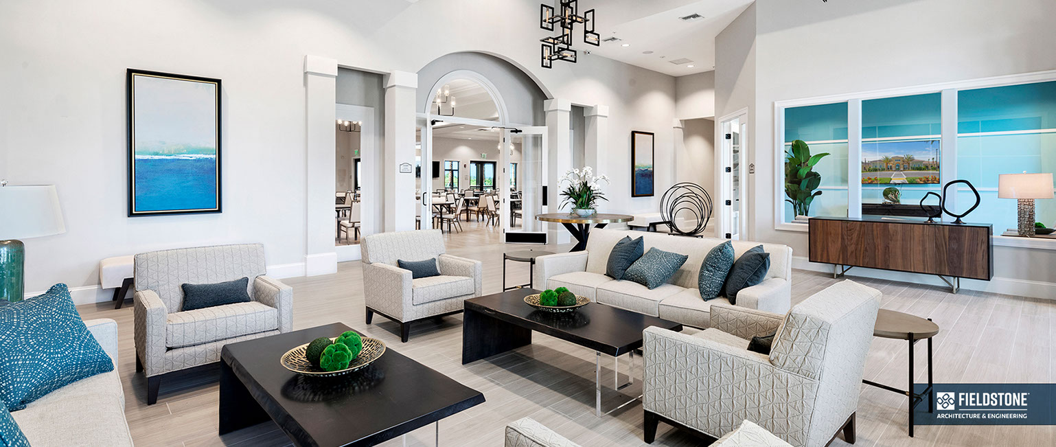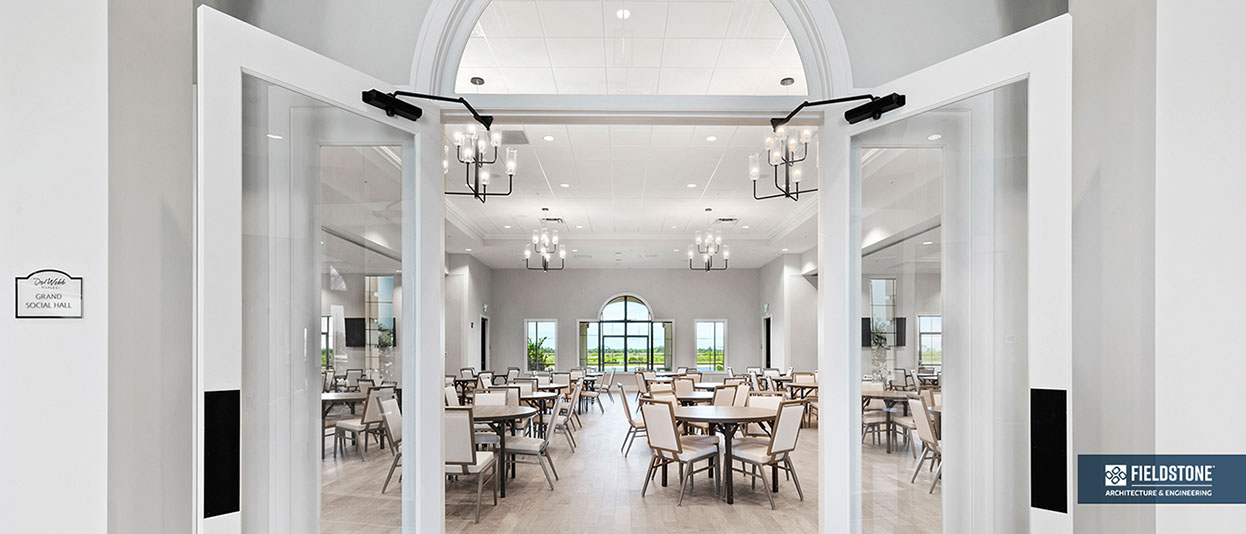 This is one of four buildings on the campus and serves as the main social/activity building. The building offers several card rooms, a game room with darts and billiards, a golf simulator, and a large ball/social room. The interior design boasts a more contemporary transitional feel.