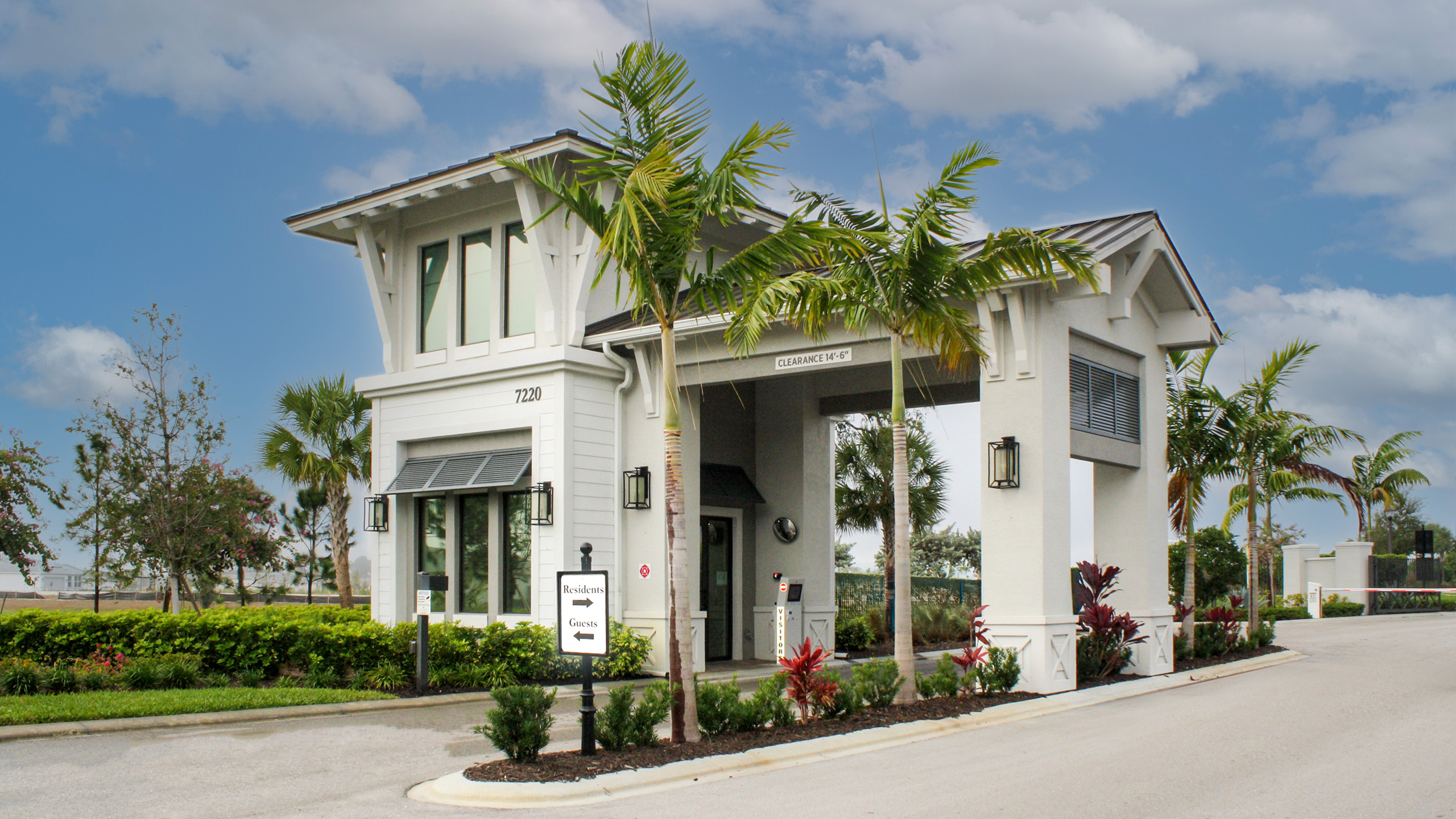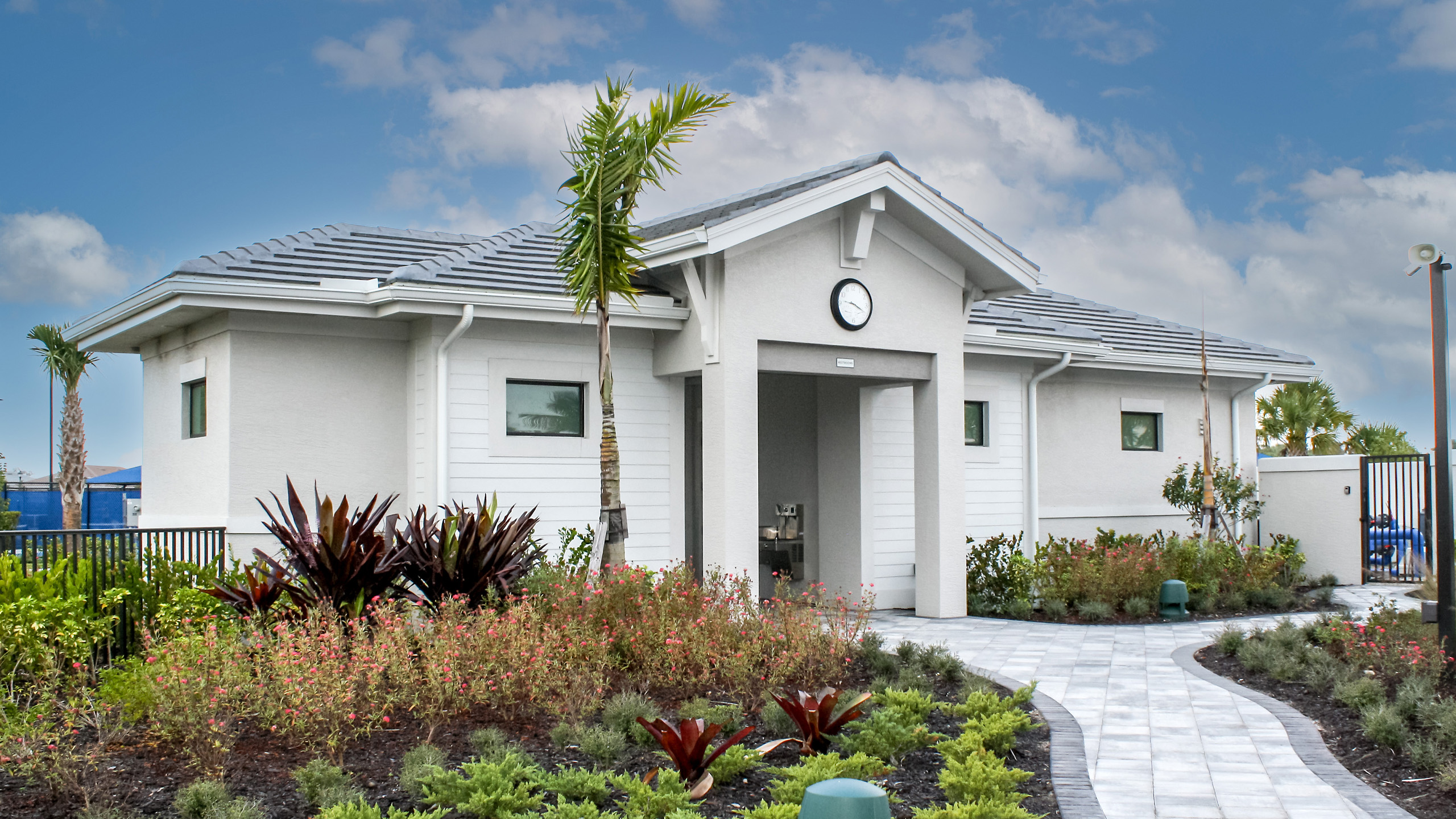 The Caribbean architectural style of these clubhouses in Sarasota, FL express a tropical feel.