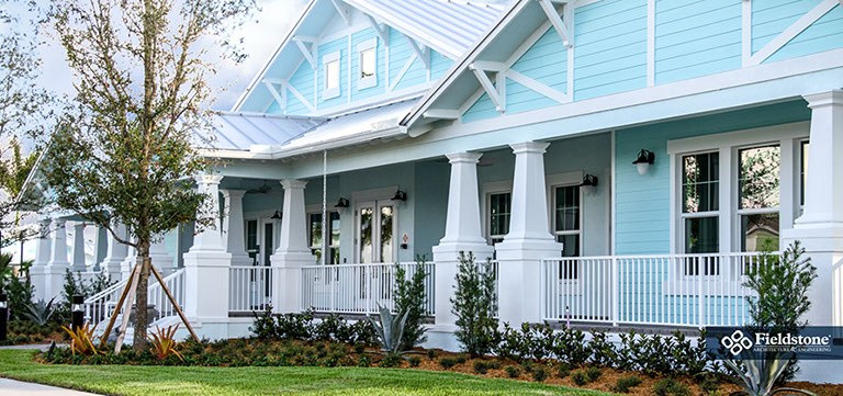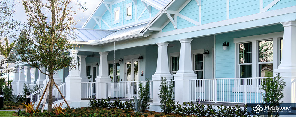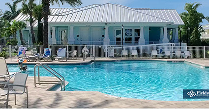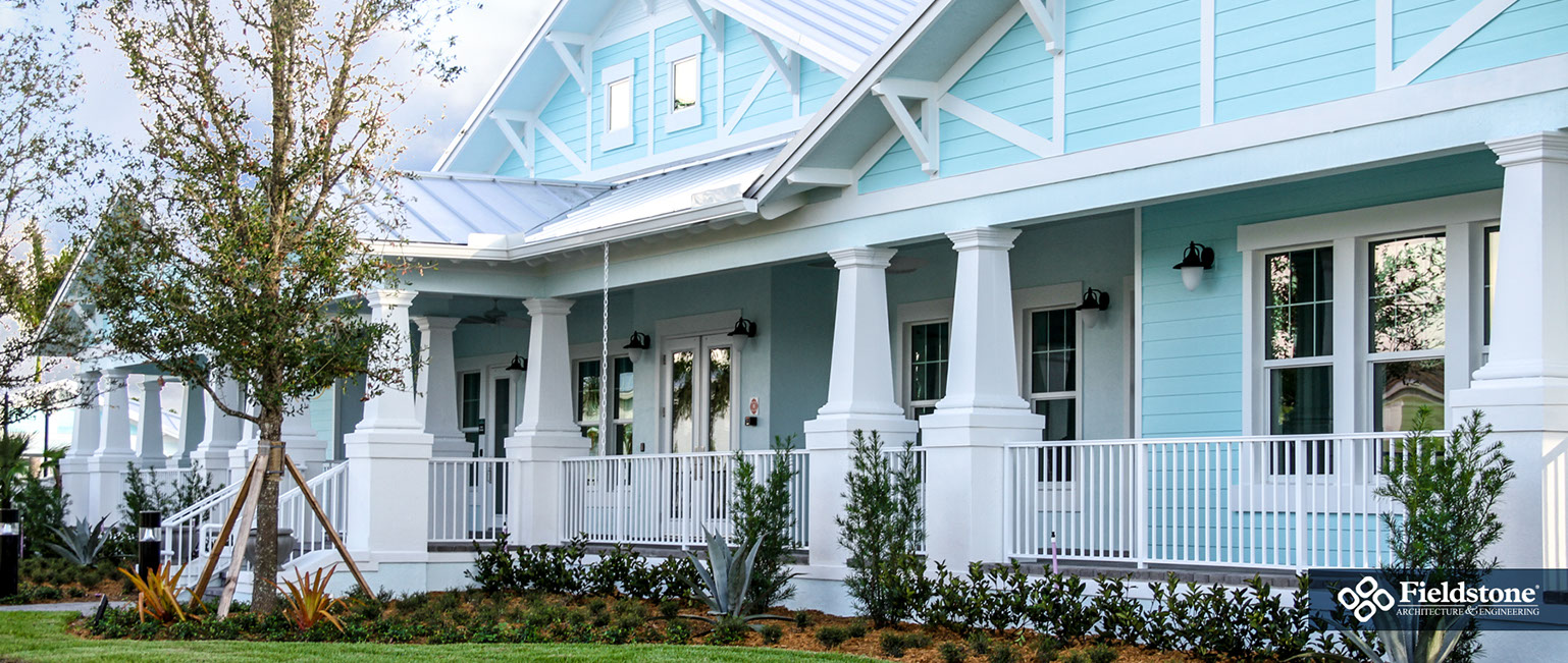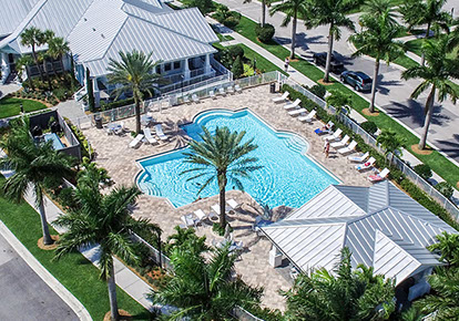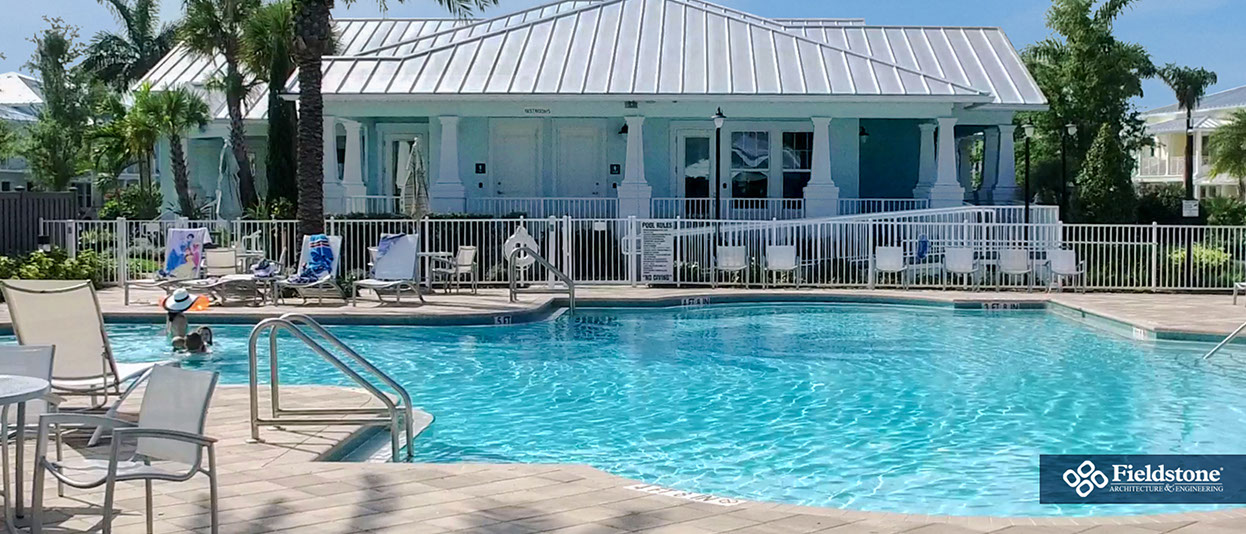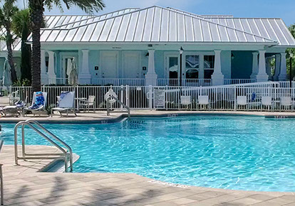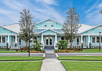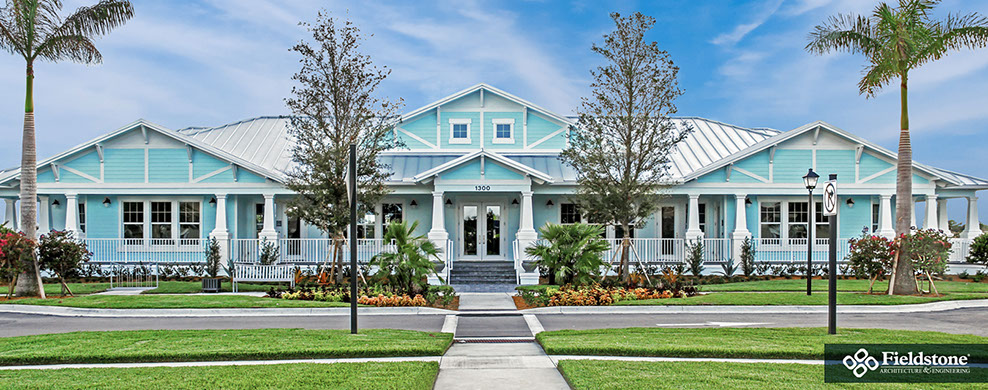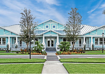 This 8,300 square foot new clubhouse was designed in a Bahama resort style of architecture and includes an extensive amenity campus. The main building is surrounded by veranda areas.
