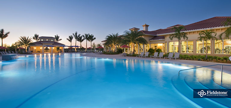 The center piece of the community is the lavish 14,000 sq. ft. clubhouse with Har-Tru Tennis courts, Bocce Ball, Resort and lap style pool, workout center, fire pits and more. Islandwalk has been one of the fastest selling communities in this area for the last decade, and we are proud to have been their partner from the initial design concept through grand opening.
