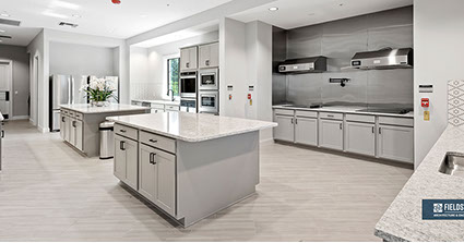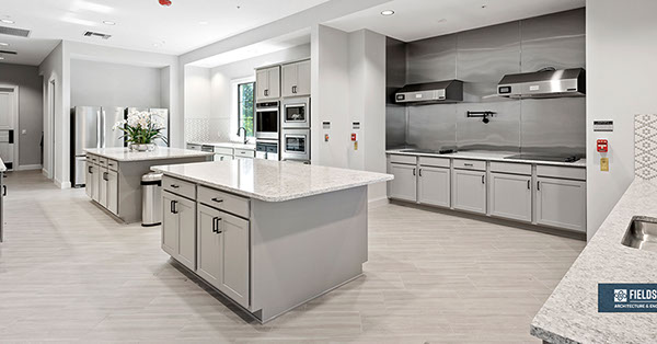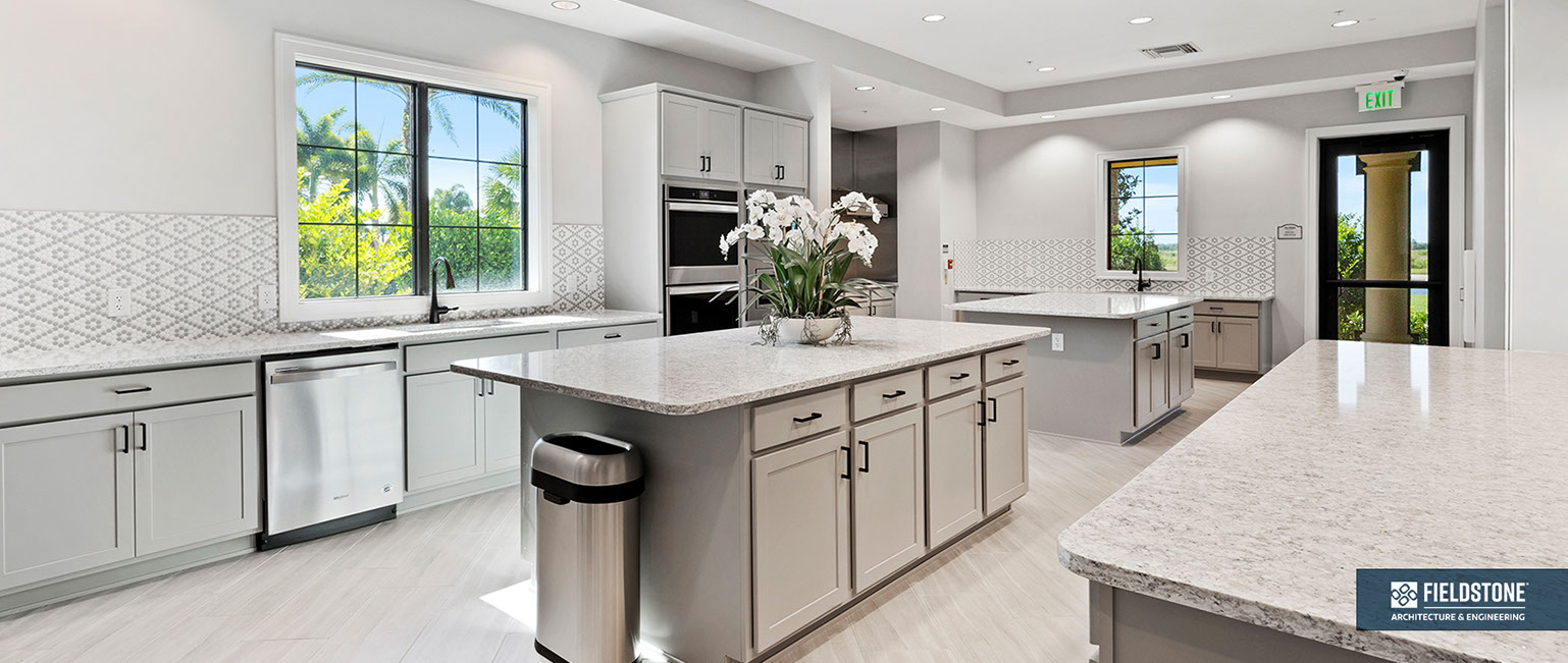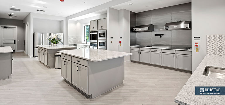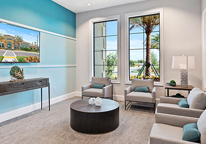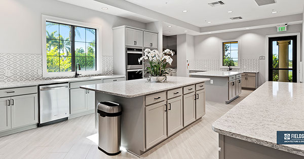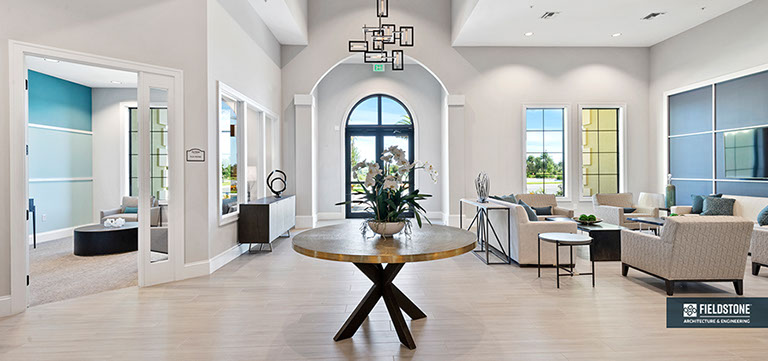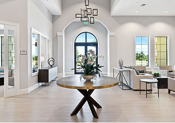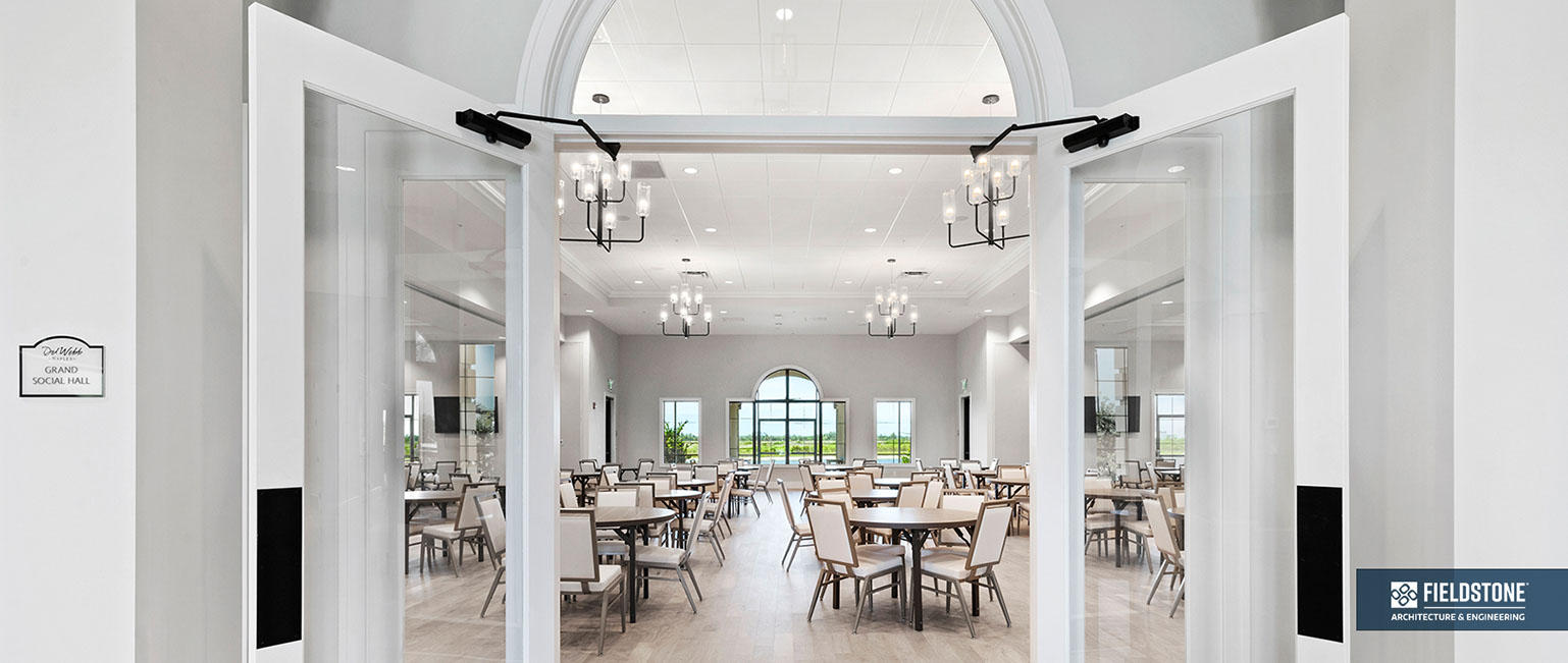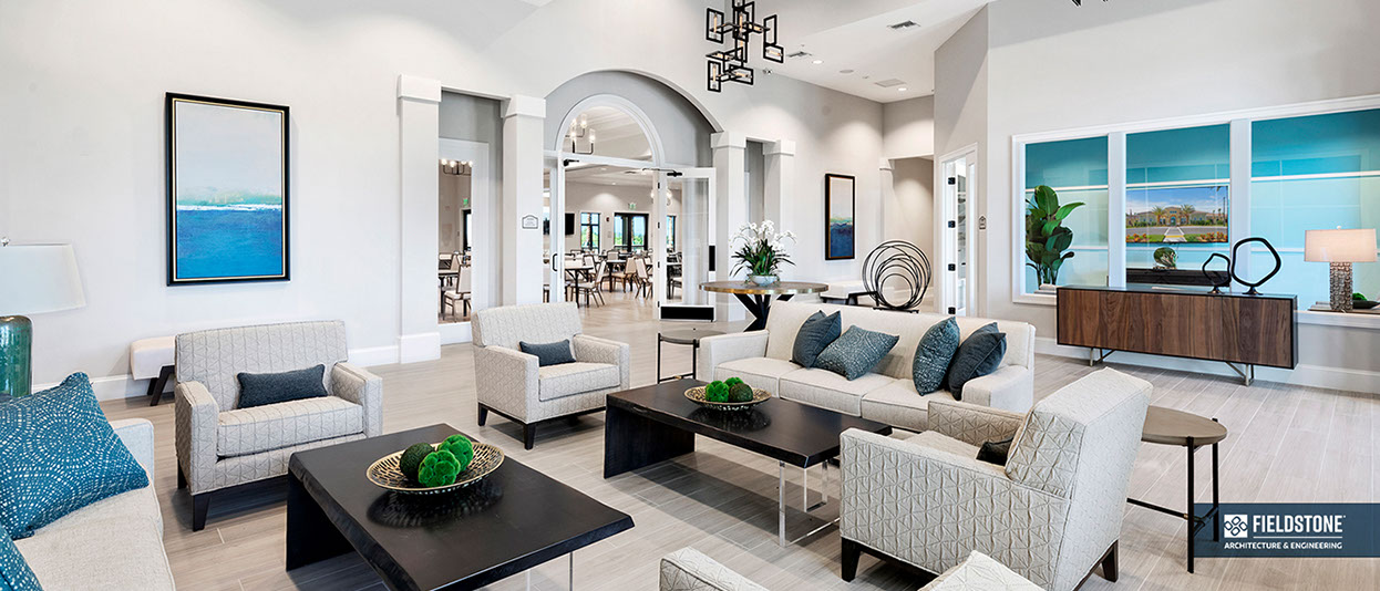 This is one of four buildings on the campus and serves as the main social/activity building. The building offers several card rooms, a game room with darts and billiards, a golf simulator, and a large ball/social room. The interior design boasts a more contemporary transitional feel.
