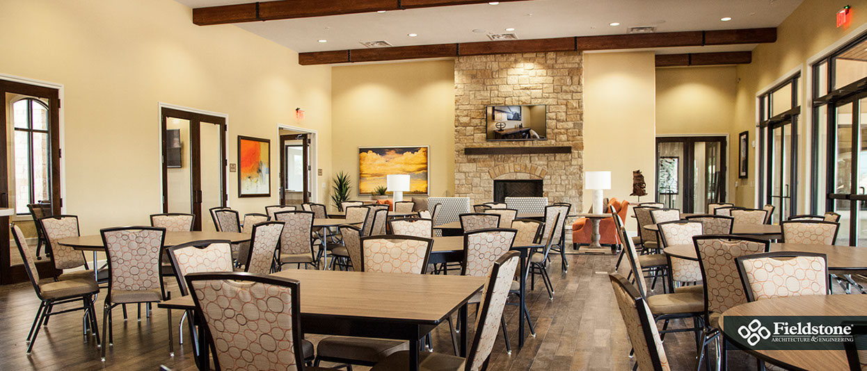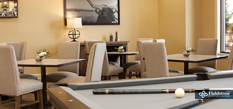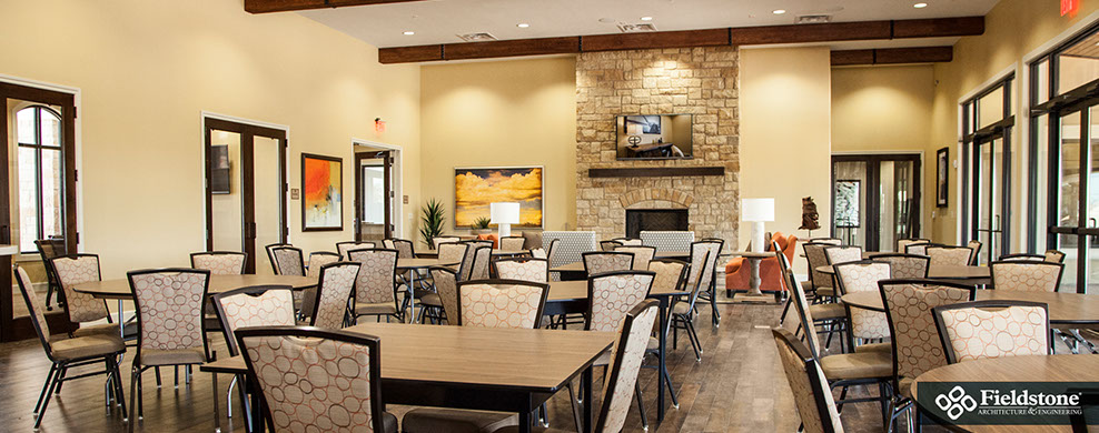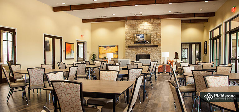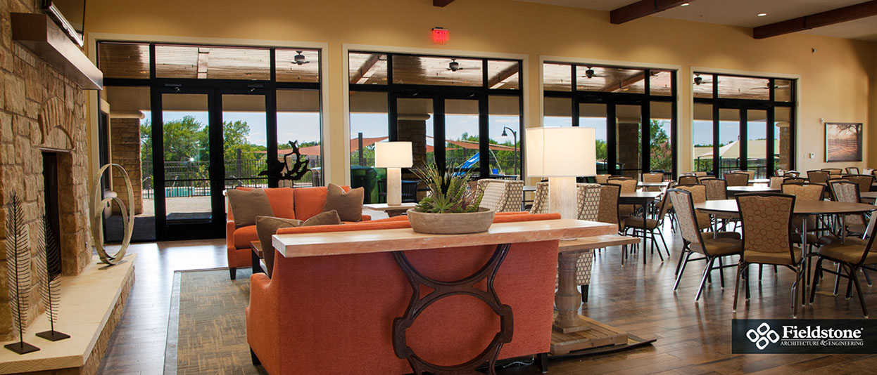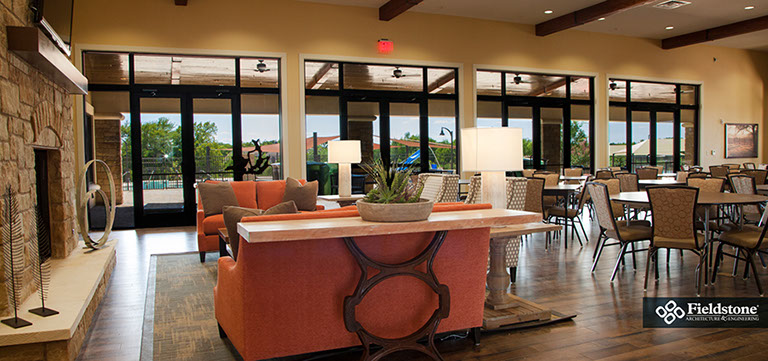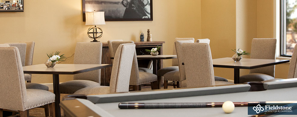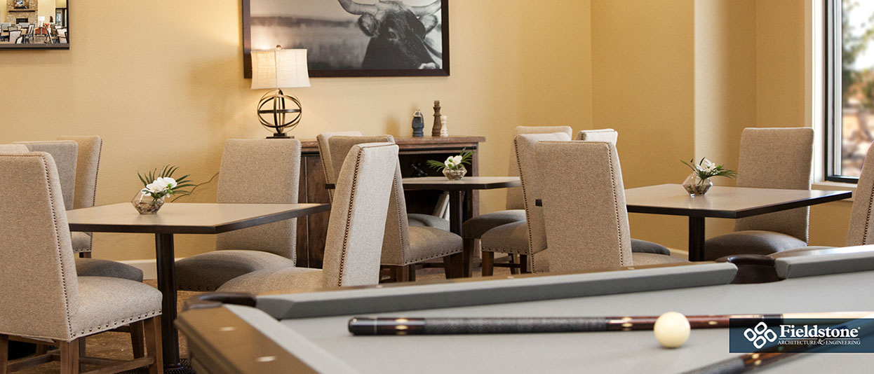 This builder was seeking a new clubhouse that would create experiences for their active community. The team at Fieldstone A&E designed the interior of this clubhouse to include a catering kitchen, fitness and aerobic center, card and crafts room, billiards and a massage room.